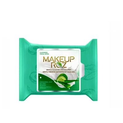 دستمال مرطوب پاک کننده آرایش خیار و آلوئه ورا میکاپ رز 25 عددی
